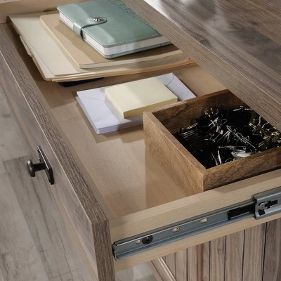 - Storage drawer with metal runners and safety stops for smaller home office items.