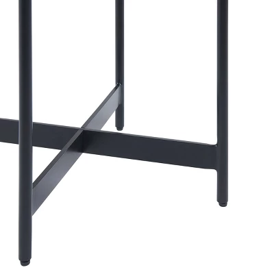 The simplistic design is both chic and functional. The end table offers modern, industrial concrete-coated table tops that will give a fresh new look to your living room. Features a tray top design that is fixed in place on a sturdy X-frame metal base. This end table beautifully marries form and function and fits perfectly in a living room, family room, or office area without crowding a space or sacrificing style.