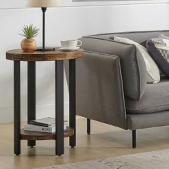 Pomona Round End Table fits any small space. The 20 inch diameter table offers 2 levels of pure beauty. Natural wood variations such as cracks, knots add to the piece’s character. The exquisite workmanship of solid wood tops with metal legs create a piece that will last for years to come. Place your favorite lamp on top and add a vase, plant, or books on the lower shelf to complete this beautiful design.