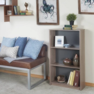 Find your niche with the versatile and modern Lux collection by Niche. Simple, clean and compact, the Lux line is sure to please. This bookcase has three shelves that are perfect for storage or display. The shelves are fixed in place for extra stability both in construction and when displaying books or other objects. Constructed of a durable melamine Latte finish that combines the convenience of modern materials with a rustic chic aesthetic. Laminates are scratch, stain and scald resistant and wipe clean easily. The gray