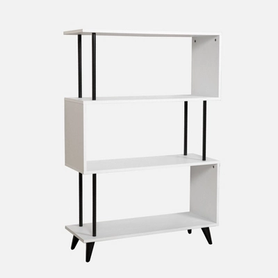- Features a unique S shaped bookshelf design with four tiers of shelving, combining modern function with contemporary style