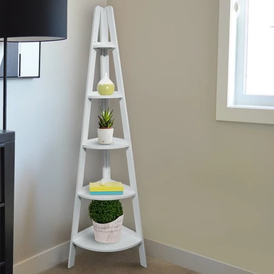 We’ve cornered the market on great bookcases! This 5-Shelf Ladder Style Corner Bookshelf gives you storage room in an area that tends to go to waste–the corner. Solid wood construction means lasting value. Complete your layout with a progressive piece that has classic features. Product dimension: 16″W x 16″D x 72″H. Light and easy assembly. Perfect for books, collectibles, and more.