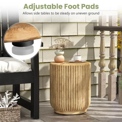 Enhance your indoor or outdoor space with this stylish and versatile side table. Its unique faux stump design brings a touch of natural flavor, while the sturdy construction and water-resistant finish ensure it lasts for years. It can be used as either a side table or a stool for more options. It is lightweight and you can easily move it around as you need. In addition, the adjustable foot pads allow the compact coffee table to be balanced on a variety of floors. Whether you place it on your patio, in your living room, in your garden, or by the pool, this side table will fit in perfectly with your existing furniture.
