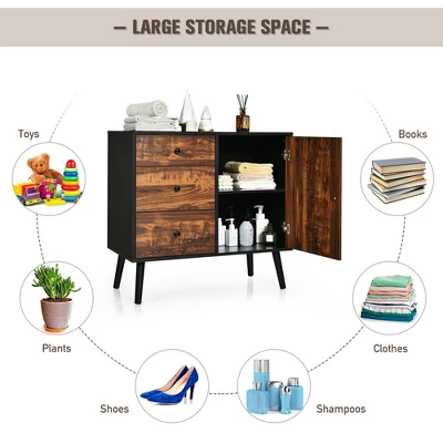 Costway Storage Cabinet W/Drawer & Side Cabinet 31.5” Sideboard Dresser Cupboard
