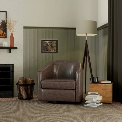 Each lounge chair measures 30.7″ Wide x 29″ Deep x 31″ Height and weighs 62 pounds allowing it to easily complement any small area. Add the optimal combination of class and comfort to your home with the traditional Swivel Base Faux Leather Accent Chair. The barrel structure and style encourage luxurious relaxation and ensure ultimate satisfaction. This accent chair is sure to add elegance to any space. Engineered with comfort, versatility, and style to be a lasting addition for your home, this classic swivel accent chair will be a proud conversation piece in any room. Built with high density foam in the back and seat to deliver optimal comfort.
