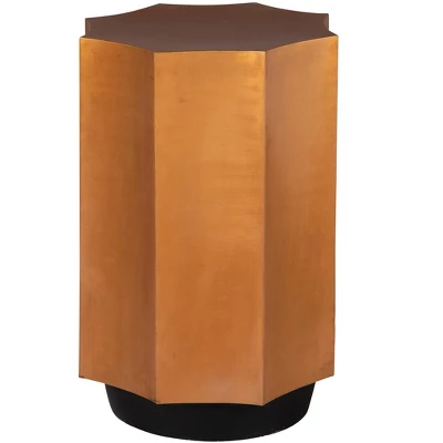- Metal table comprised of iron sheet metal shaped in flutes with an aged copper finish.