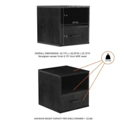 Hastings Home End Table, Stackable Modular Cube With Drawer, Black