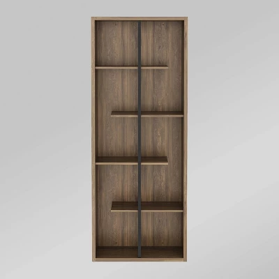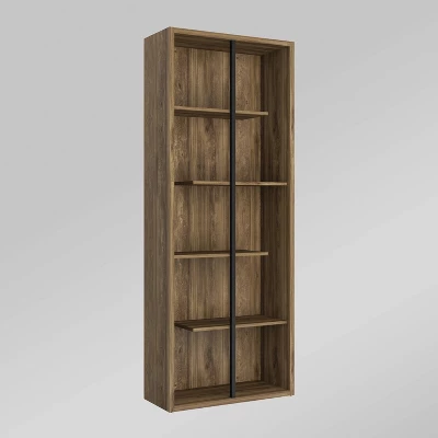 55.5″ Modern 4 Shelf With Metal Bar Room Divider Bookcase Coastal Oak/Black – Saracina Home