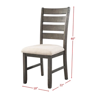 The Picket House Furnishings Sullivan Side Chair Set combines rustic charm with modern accents! The chair set includes two dining chairs. This chair duo features a classic, ladder back design; letting your back rest easy while you sit through dinner. The foam cushion seat, will keep you comfortable and the conversation going for hours. The seat is upholstered in a cream, linen-like fabric adding style to this already stylish set. The frame of the chair is finished in a smokey dark ash, and distressed marks are present throughout. Pair the Sullivan Chairs with the Sullivan Dining Table to complete your dining room. The transitional design will be a staple in your home for years to come.