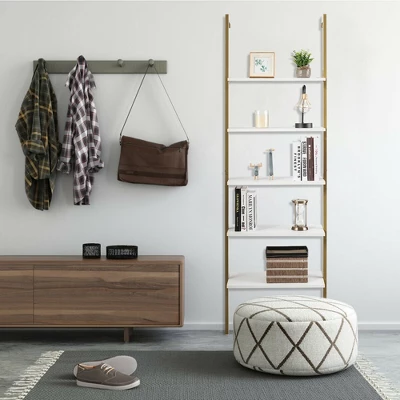 Tangkula 2PCS 5-Tier Ladder Shelf Wood Wall Mounted Display Bookshelf Metal Frame